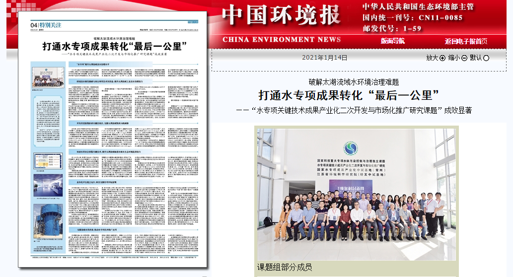 2021年1月14日,《中国环境报》聚焦维尔利环保科技集团股份有限公司,刊登了题为《破解太湖流域水专项治理难题 打通水专项成果转化“最后一公里”》的文章。